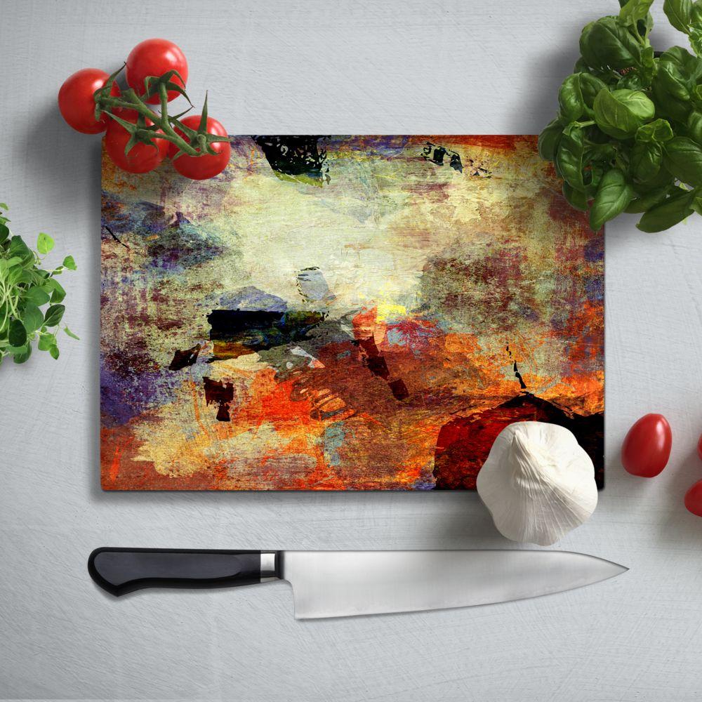 BELLART - Abstrait Orange - Planche à découper en verre à impression UV 35x25 cm