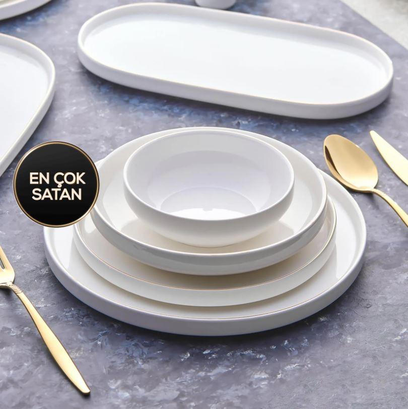 La vaisselle Karaca Saturn pour 12 personnes est l'un des modèles les plus frappants parmi la vaisselle de 59 pièces. Ce service de table en porcelaine, qui ajoutera élégance et noblesse à votre table grâce à son design différent, est un ensemble exquis où vous pourrez recevoir vos invités les plus spéciaux et planifier une organisation de dîner élégante. Venez dresser des tables parfaites avec ce service de table 12 personnes et laissez tout le monde admirer votre table !