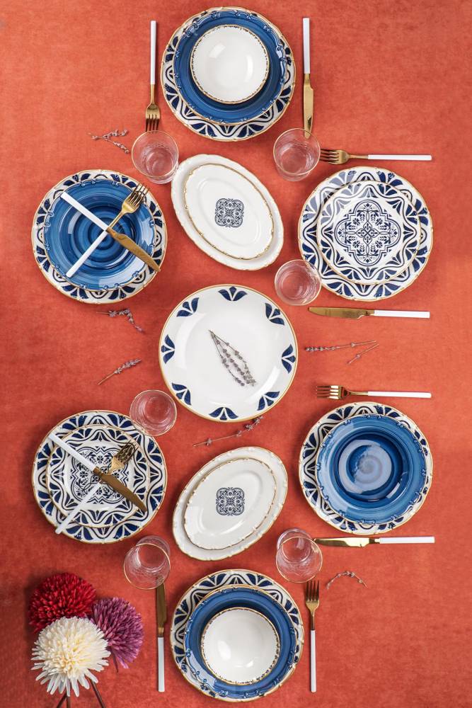Complétez la splendeur de vos tables avec la vaisselle Acar Pandora aux motifs ethniques.