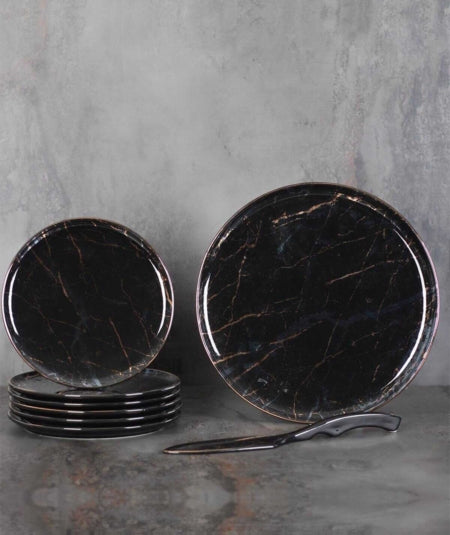 ACAR Service à gâteau en porcelaine motif marbre 8 pièces