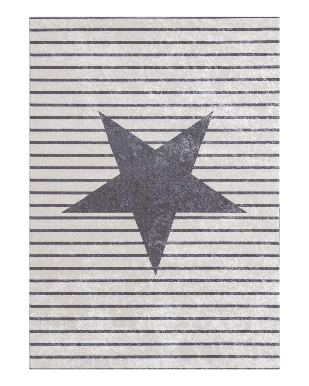 BELLA TAPIS Motif Rayé Etoile Gris Tapis lavable antidérapant et antibactérien