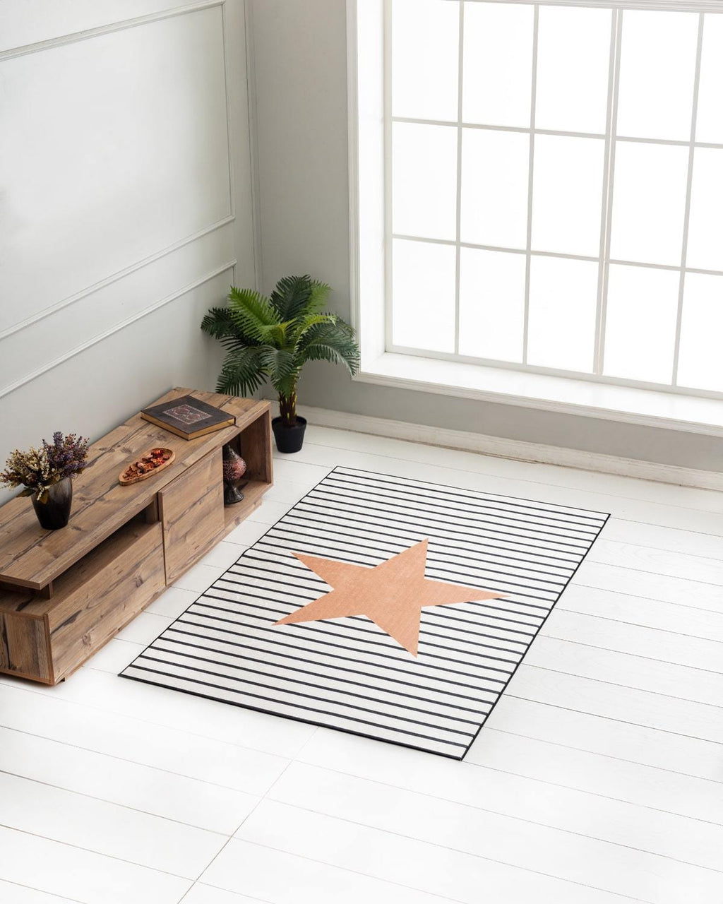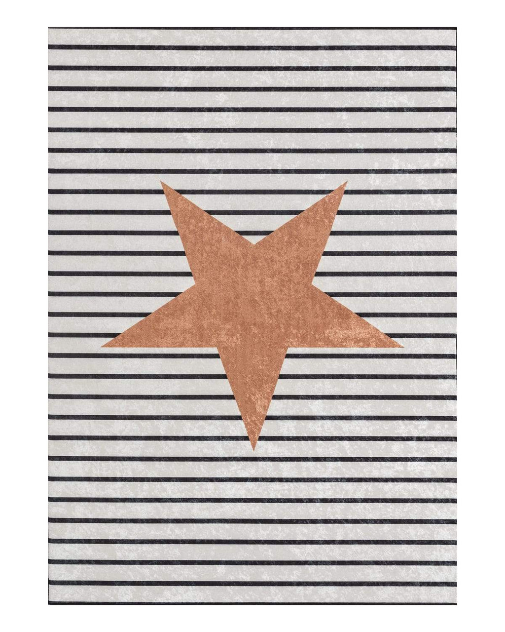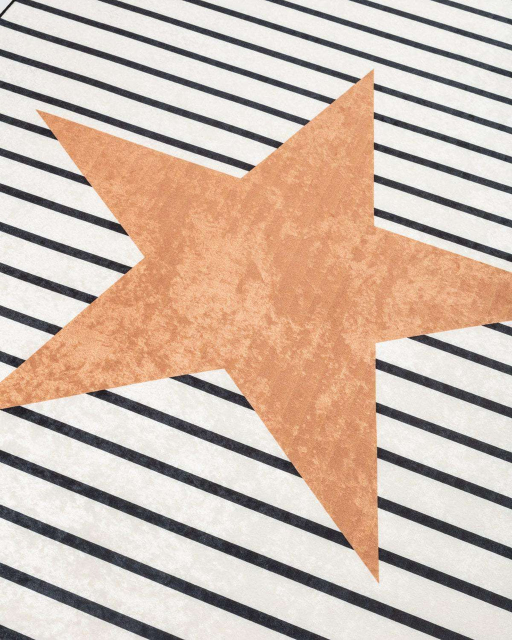 BELLA TAPIS Motif Rayé Etoile Or Tapis lavable antidérapant et antibactérien