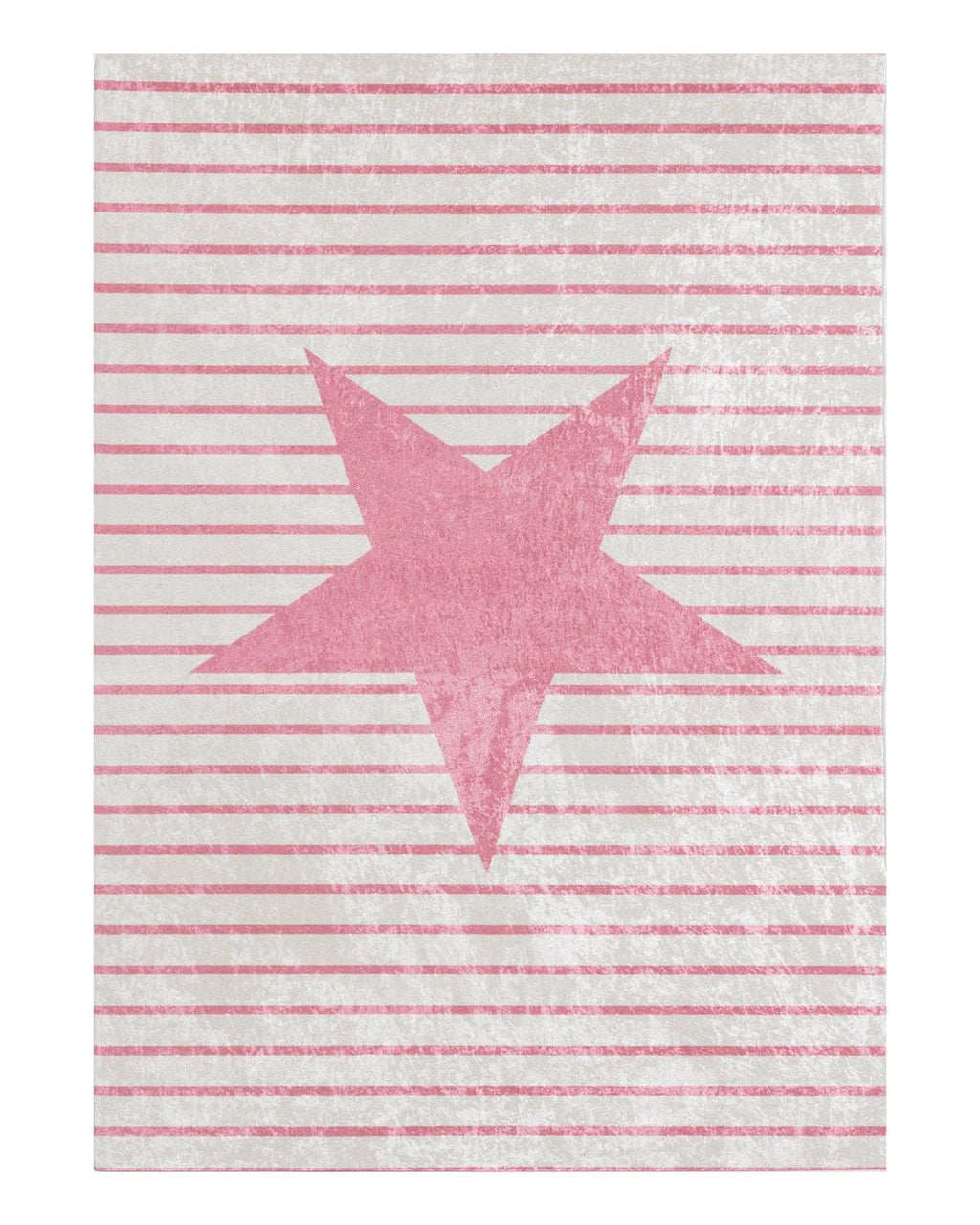 BELLA TAPIS Motif Rayé Etoile Rose Tapis lavable antidérapant et antibactérien