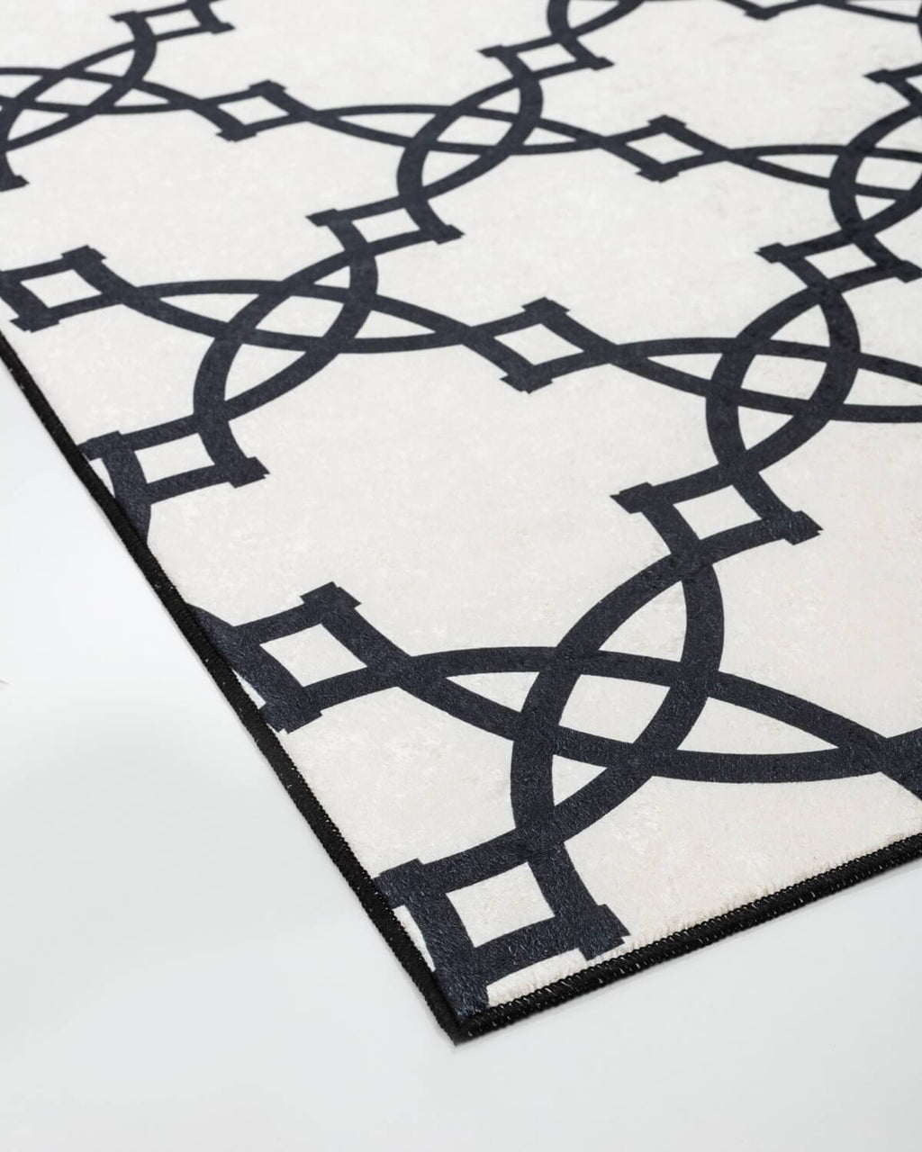 BELLA TAPIS ZINCIR Blanc et Noir Tapis lavable antidérapant et antibactérien