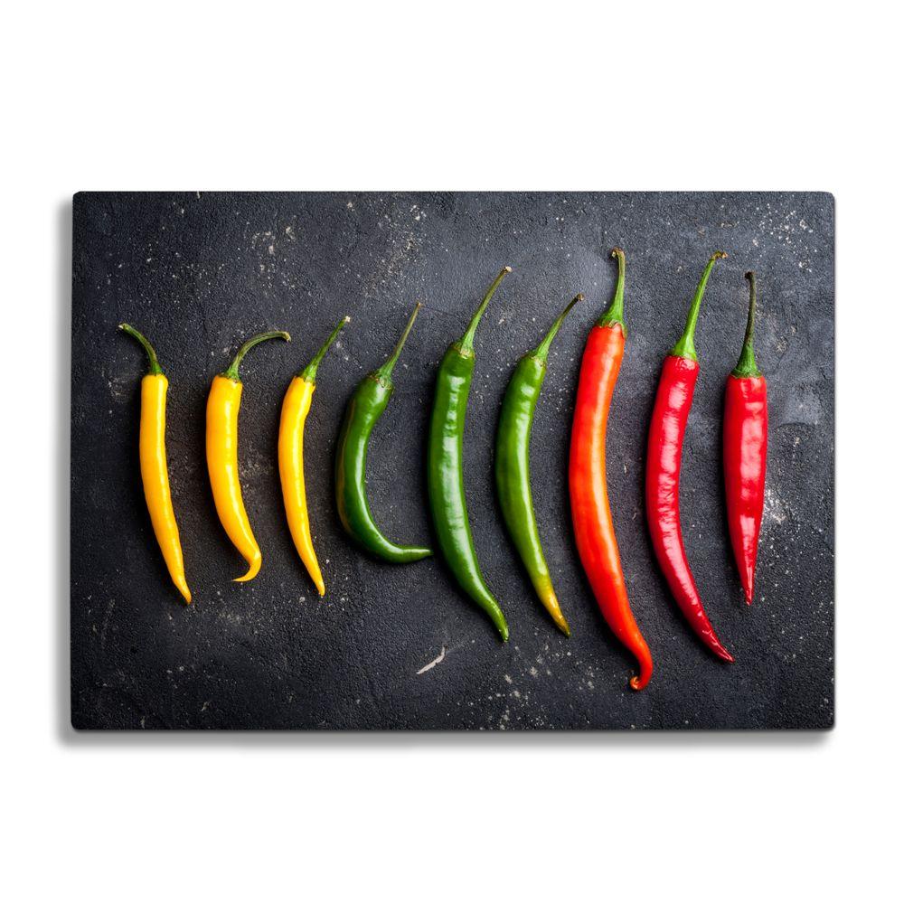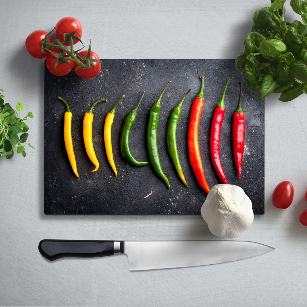 BELLART - Poivrons Jaune Vert et Rouge - Planche à découper en verre à impression UV 35x25 cm
