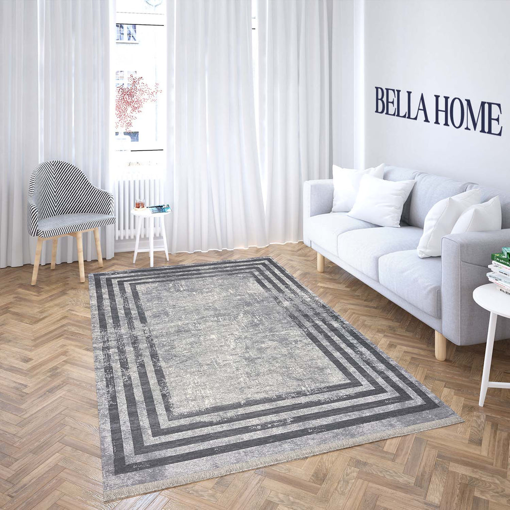 BRILLANT GREGOR Noir et Gris Tapis à franges lavable antidérapant et antibactérien
