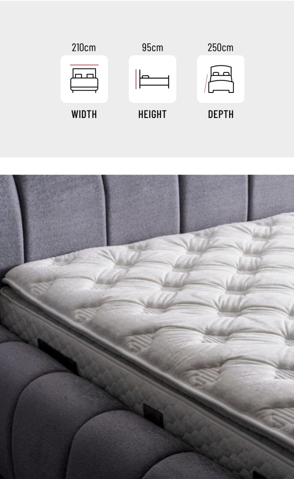 BUBBLE Matelas, Lit coffre et Tête de lit en tissu velours texturé - Gris