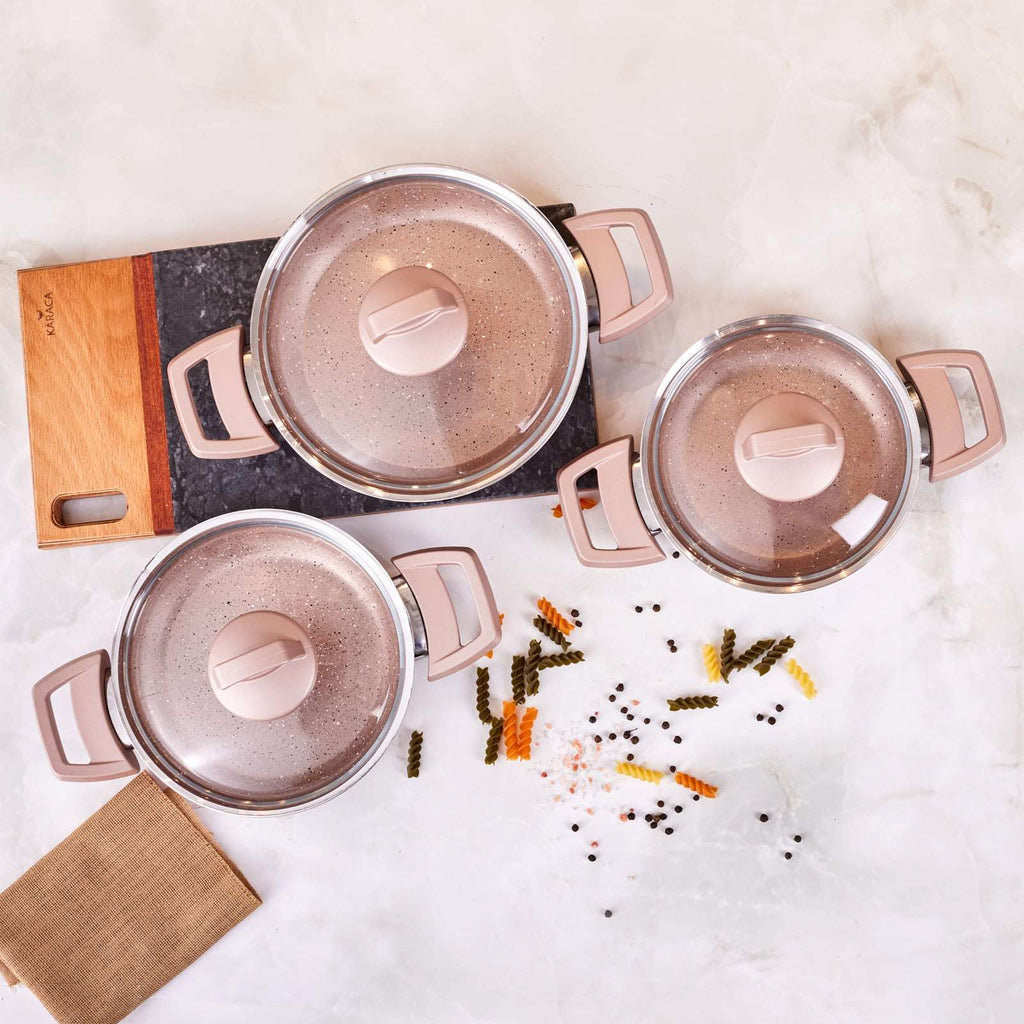 KARACA BIOGRANIT ROSEGOLD Set de 3 poêles avec couvercles