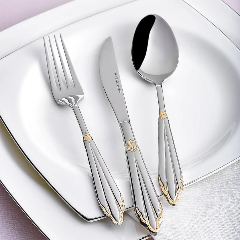 L'ensemble de couverts Karaca Mantilla de 84 pièces peut être utilisé pour préparer vos tables à manger étincelantes. Des fourchettes, cuillères et couteaux nécessaires pour servir vos repas et desserts, ainsi que des cuillères à café (ou de thé) pour servir vos boissons font également parti des pièces de l'ensemble. C'est une ménagère idéale pour accueillir jusqu'à 12 personnes. Vous pouvez acheter cet ensemble pour vos précieux invités qui admireront son éclat lors de la dégustation de vos plats.