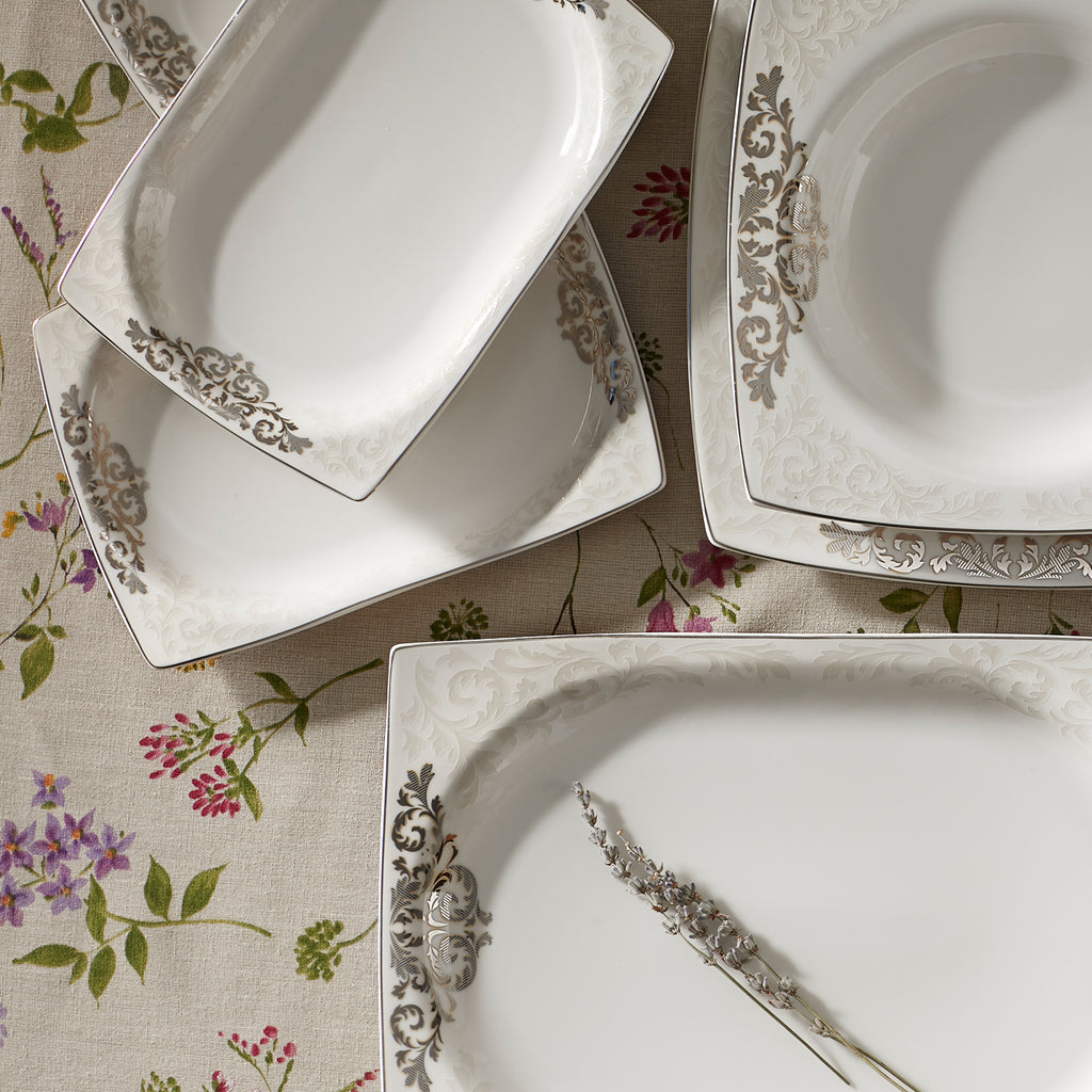 KARACA NAZENDE CREAM Service de table carré 60 pièces 12 personnes