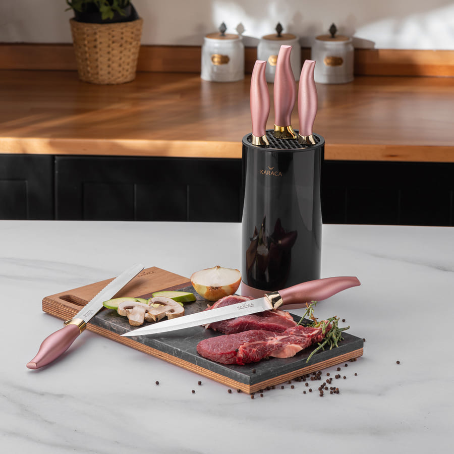Avec la série de couteaux Karaca Rosegold, vous découvrirez l'élégance de la couleur rose dans votre cuisine... Ces produits changeront l'ambiance de votre cuisine…