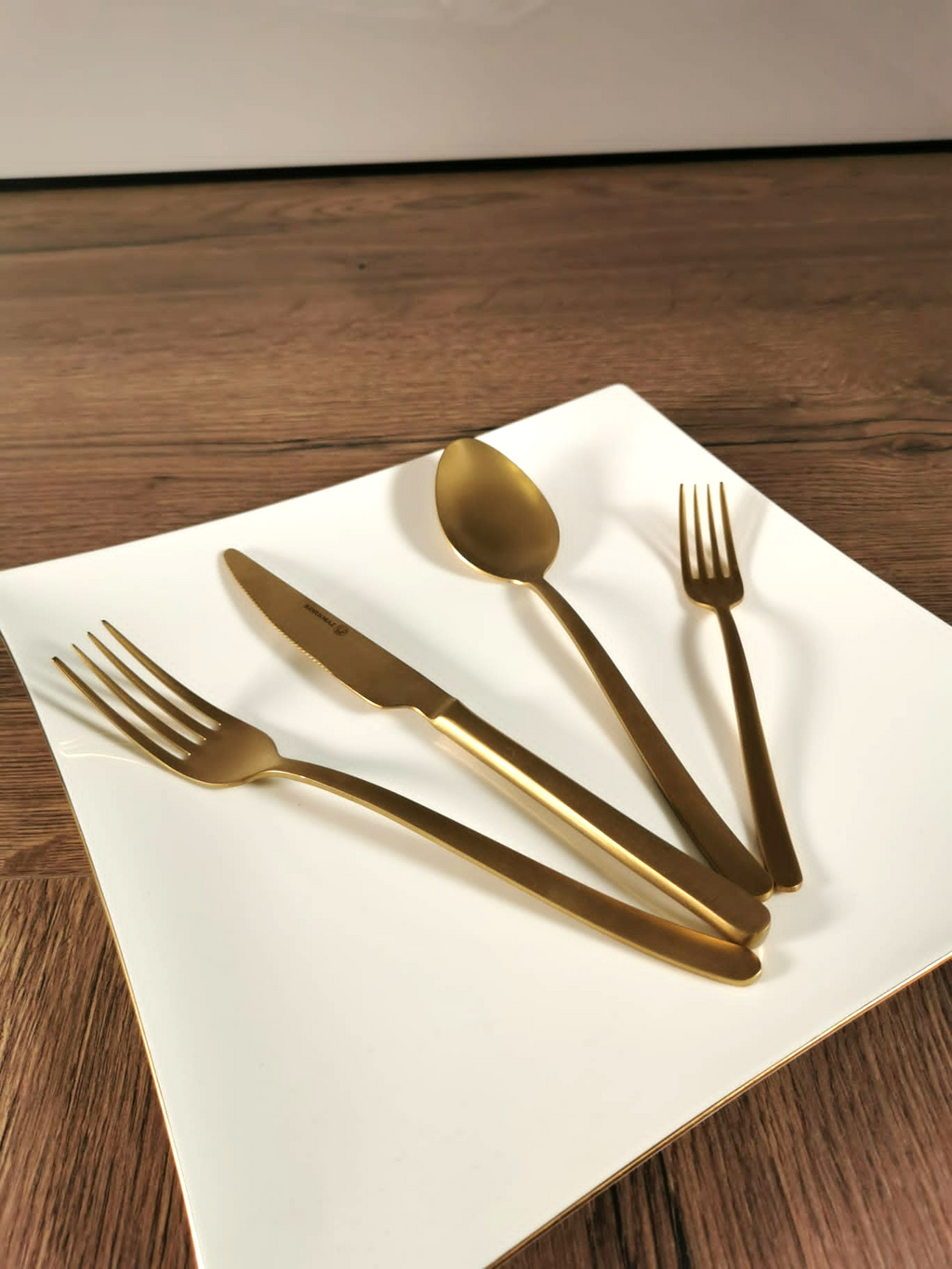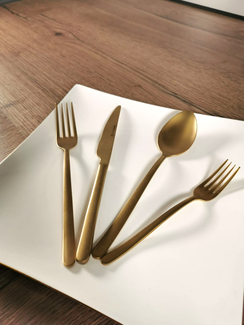Choisir l'ensemble de couverts KORKMAZ Rita Gold, c'est choisir à la fois la tendance et la simplicité. C'est une ménagère idéale pour accueillir jusqu'à 6 personnes.