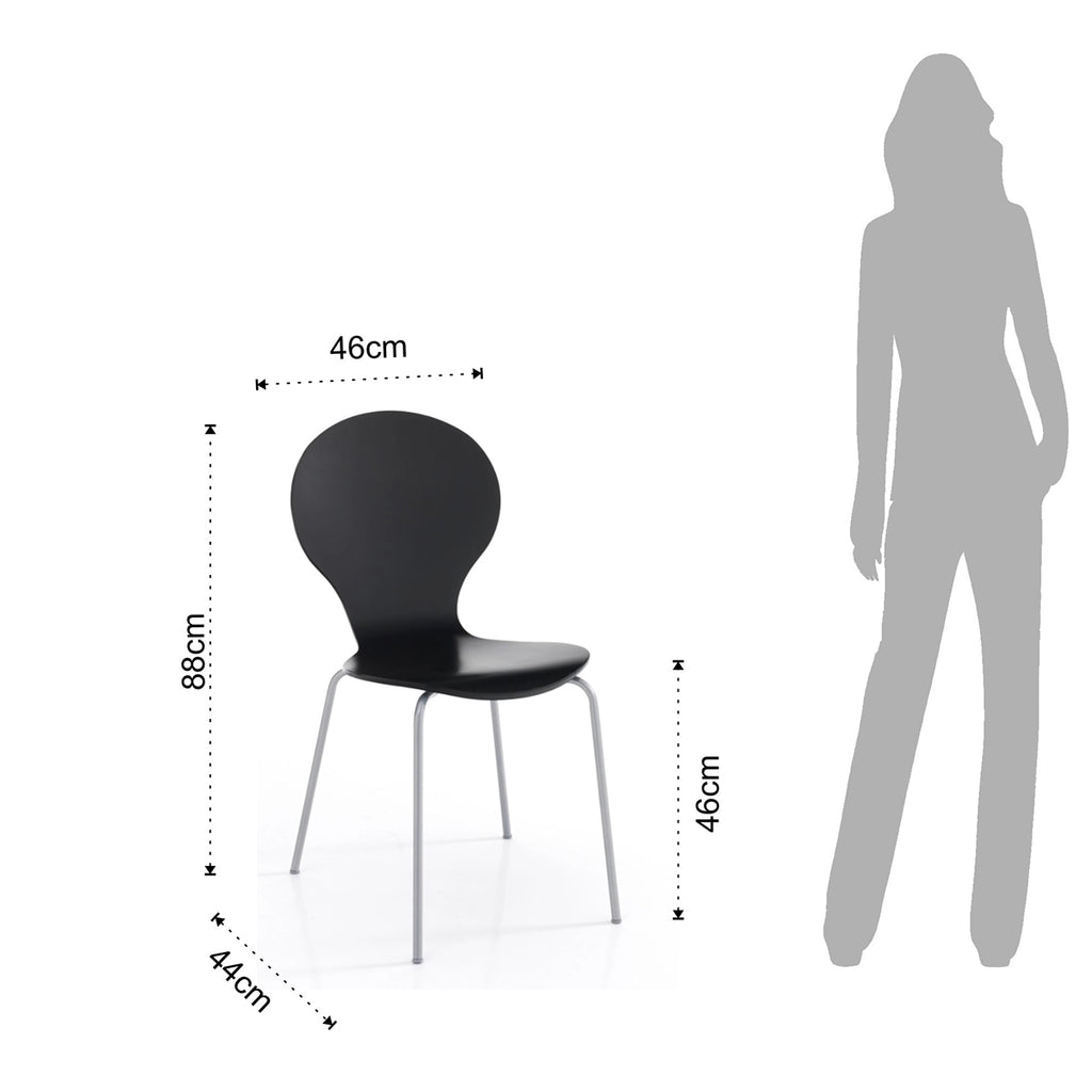 Set de 4 Chaises Moderne de salon, séjour et salle à manger Noir - pieds Chrome