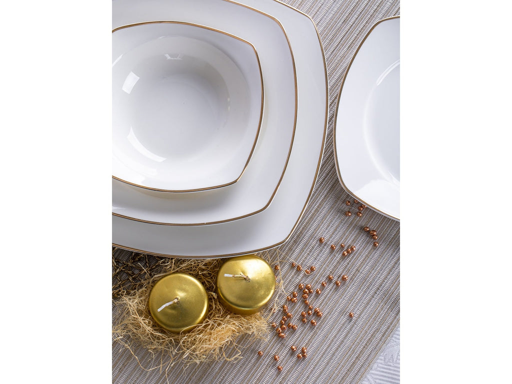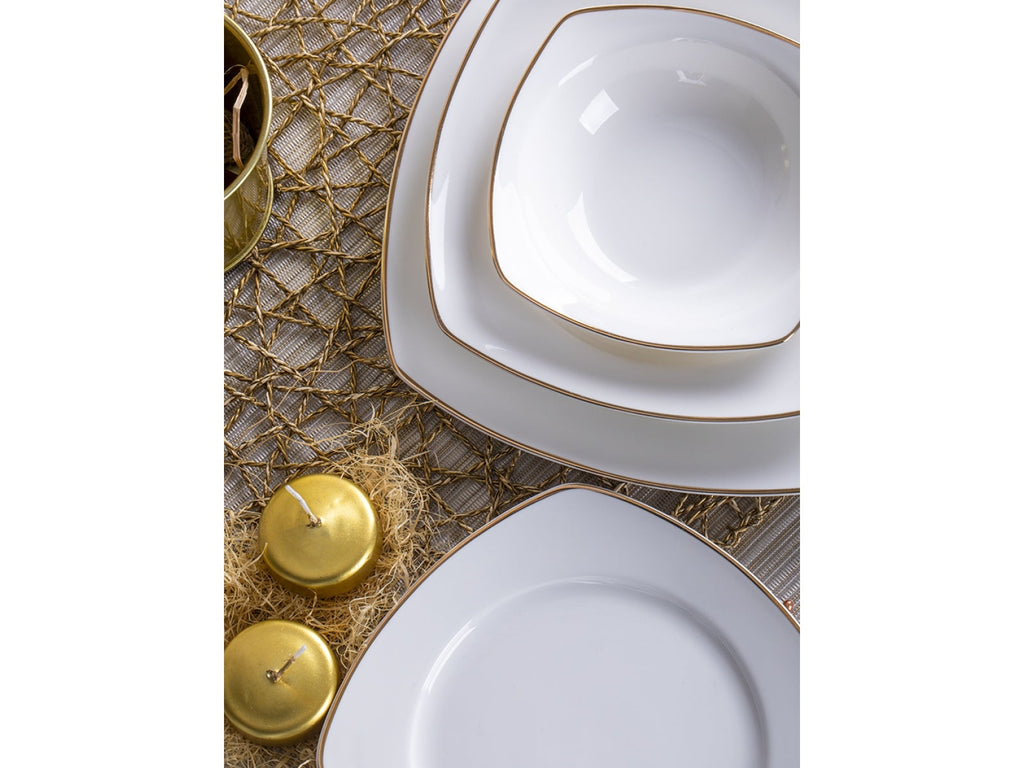 Cet ensemble de vaisselle 24 pièces Taç Spinosa est une série spéciale qui couronnera vos tables avec sa blancheur pure et ses liserés dorés.