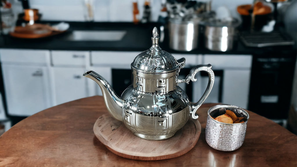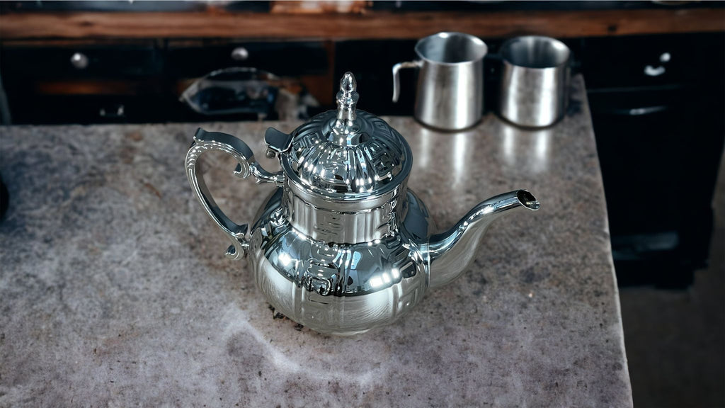 Fabriqué en acier inoxydable chromé de haute qualité et matériaux sûrs, cette théière de design élégant et à la mode sera de bonne compagnie pour déguster un bon thé.