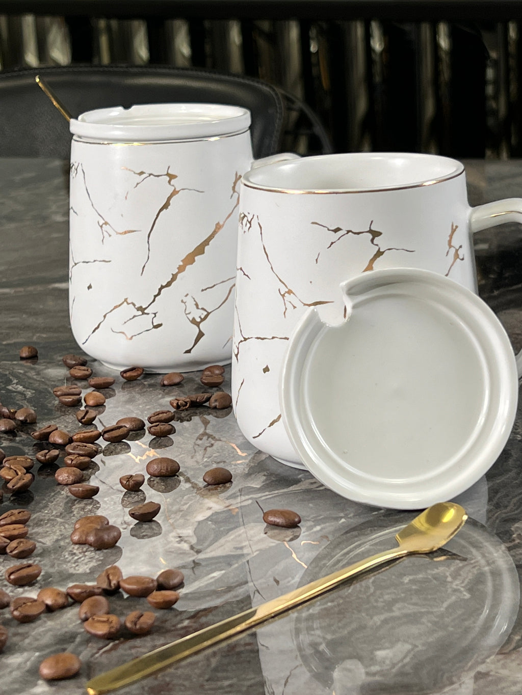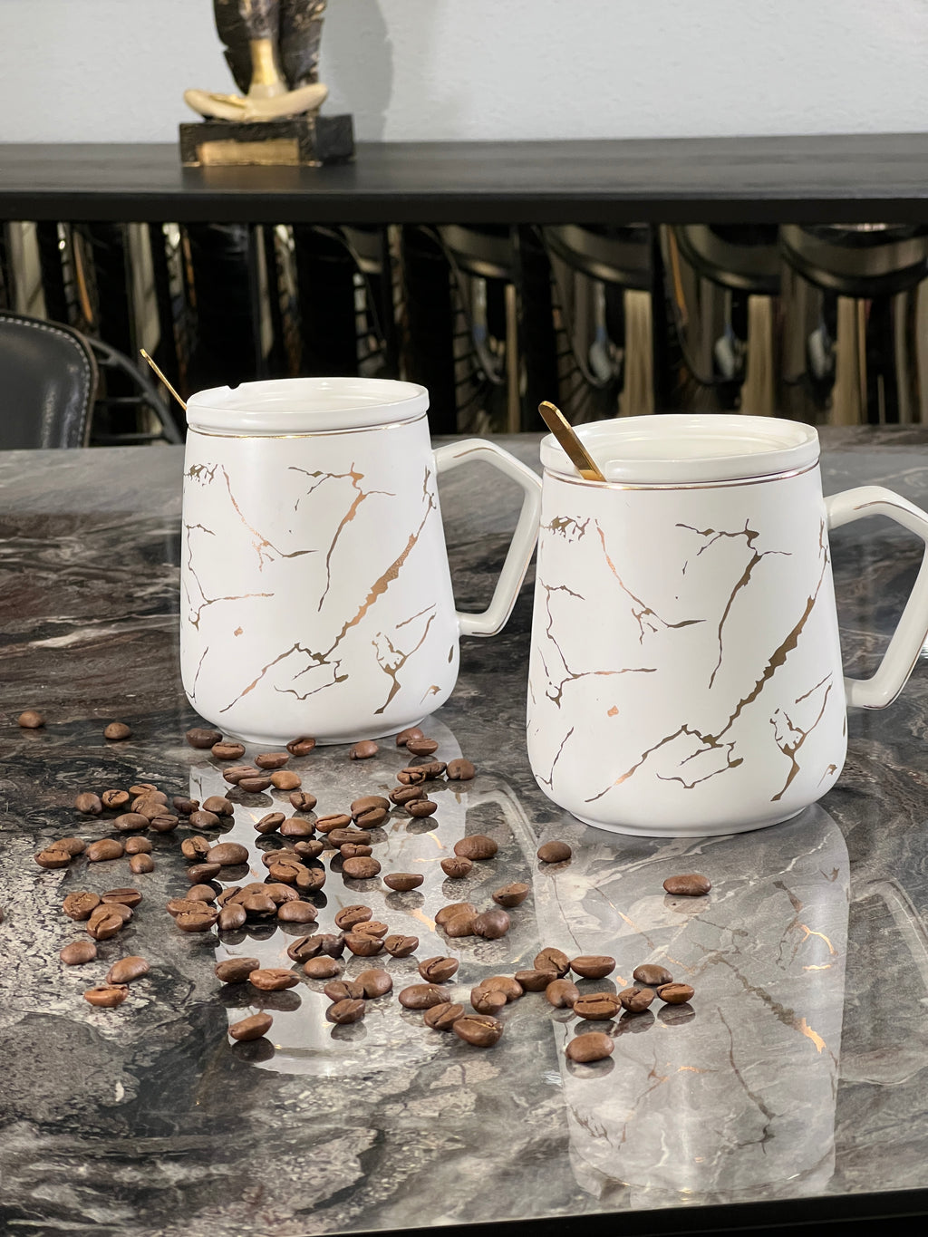 TREND HOME Lot de 2 Mugs BLANC motif marbré doré 6 pièces