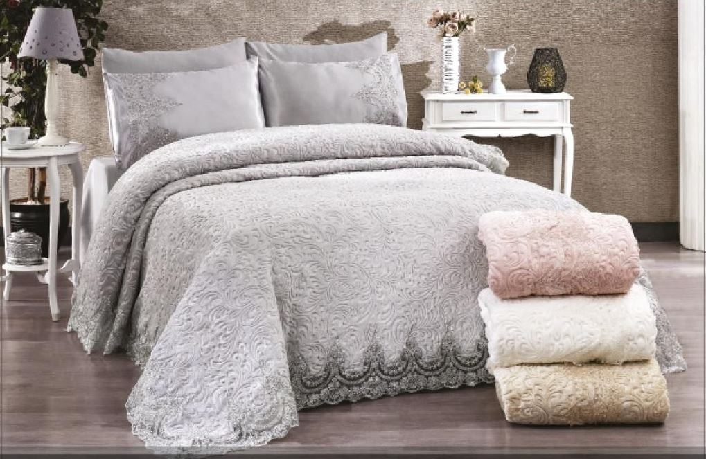 TREND HOME COLLECTION MELISSA Ensemble Couvre-lit avec dentelle 2 personnes 6 pièces