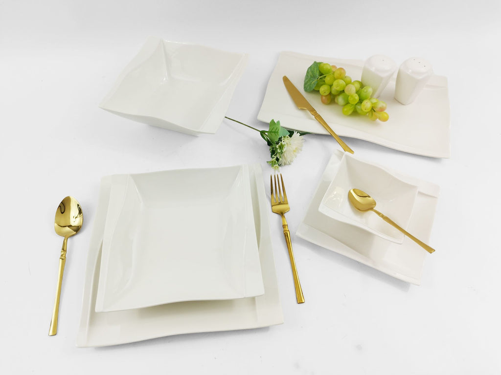Design moderne, chacun de nous rêve d'une vaisselle complète et élégante. Le service de table ajoutera de la fraîcheur et de la nouveauté à votre salle à manger. La couleur de la porcelaine blanche sera magnifique sur la table quelle que soit la saison. Le service est fabriqué en porcelaine de haute qualité et est très durable.