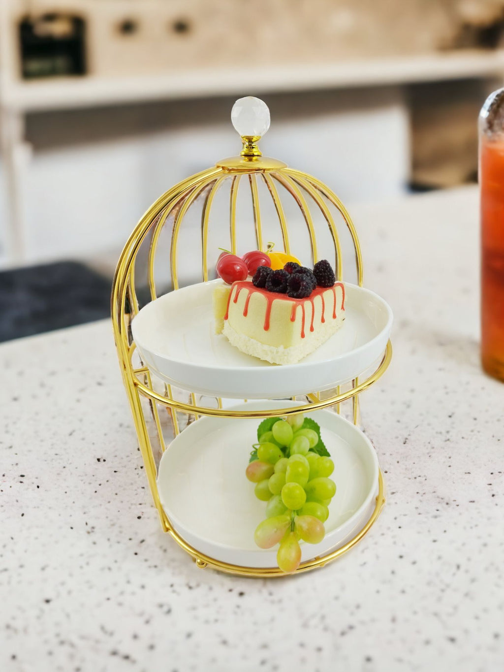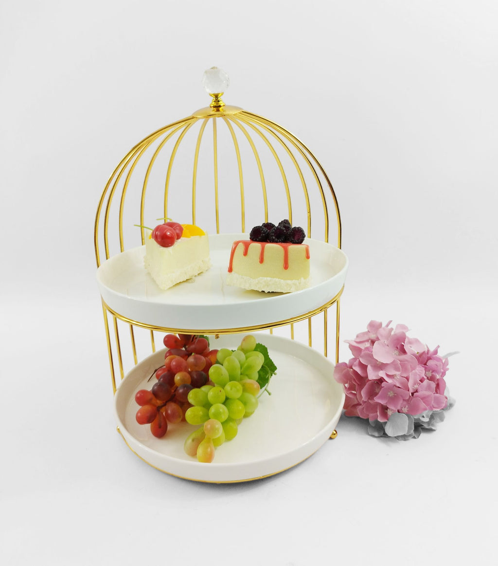 TREND HOME BIRD Présentoir à 2 étages avec support doré