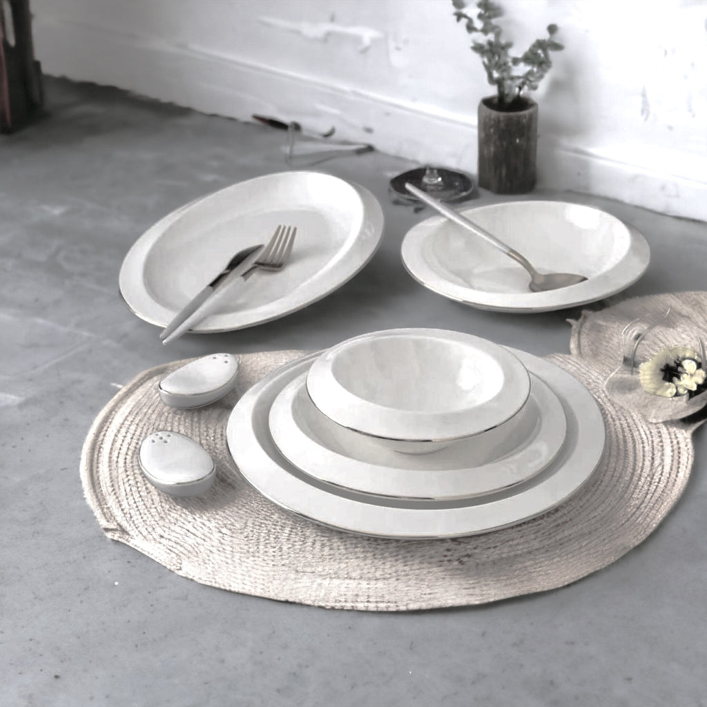 Design moderne, chacun de nous rêve d'une vaisselle complète et élégante. Le service de table ajoutera de la fraîcheur et de la nouveauté à votre salle à manger. La couleur de la porcelaine blanche sera magnifique sur la table quelle que soit la saison. Le service est fabriqué en porcelaine de haute qualité et est très durable.