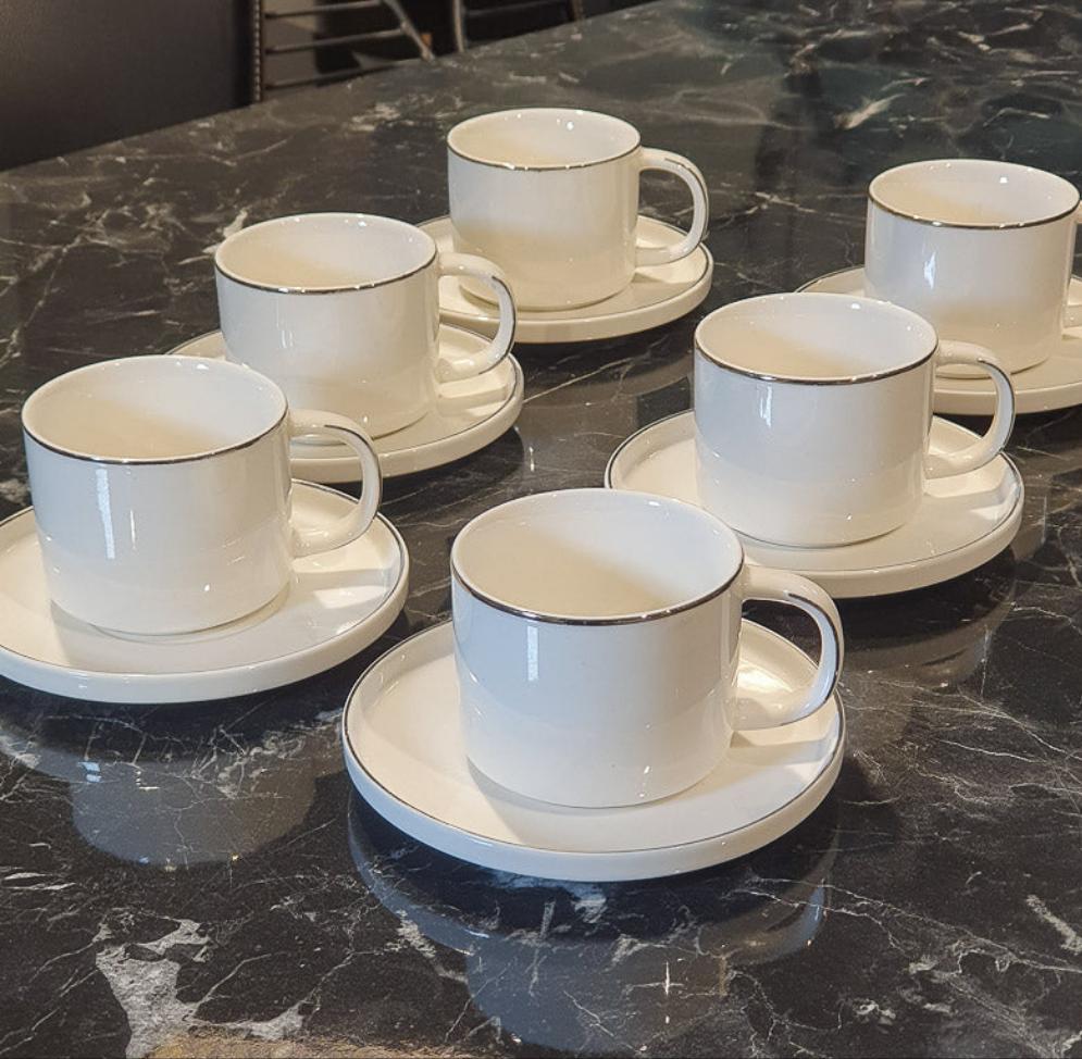 ZELLERFELD Set de tasses à thé/café avec liseré argenté12 pièces 6 personnes