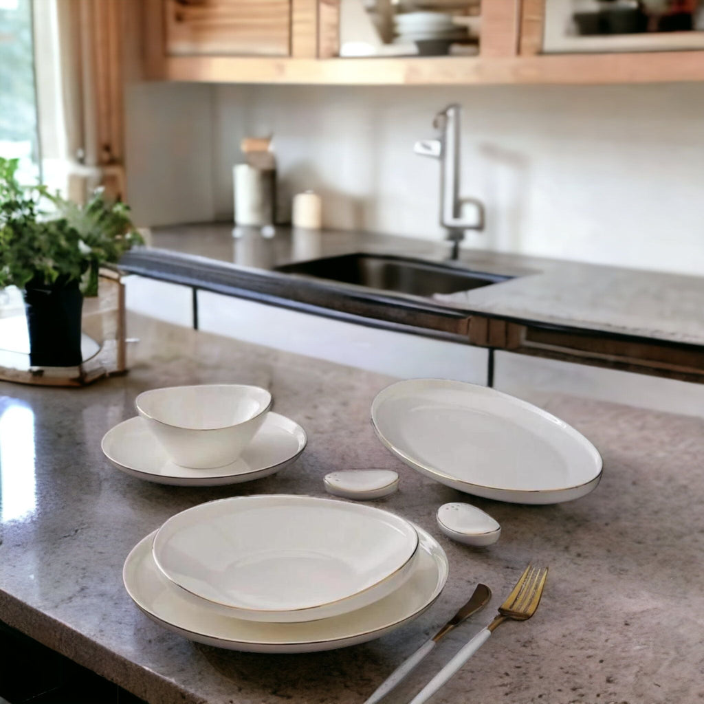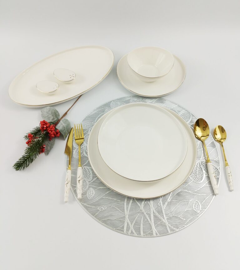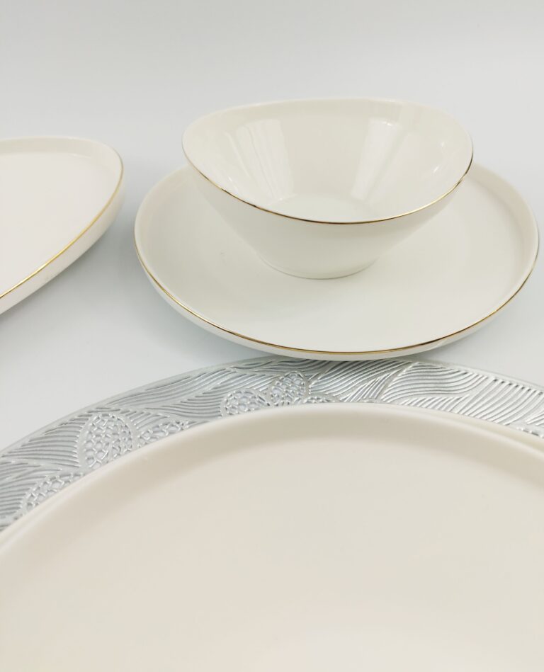 Design moderne, chacun de nous rêve d'une vaisselle complète et élégante. Le service de table ajoutera de la fraîcheur et de la nouveauté à votre salle à manger. La couleur de la porcelaine blanche sera magnifique sur la table quelle que soit la saison. Le service est fabriqué en porcelaine de haute qualité et est très durable.